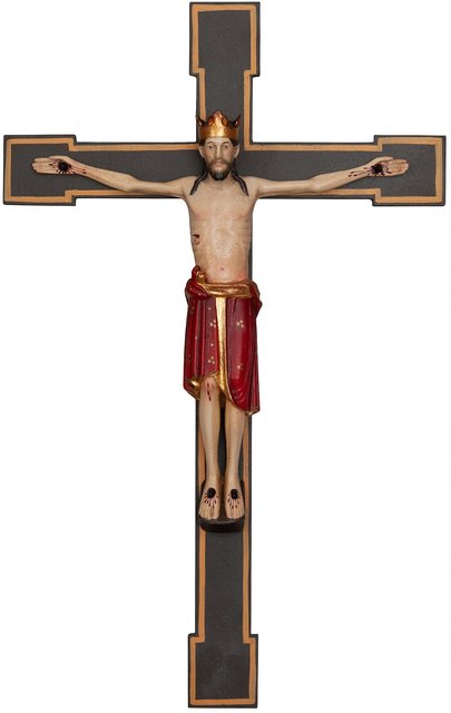 Auf Kreidegrund mit Acrylfarben bemalt und mit 23 Karat Gold Auflage veredelt