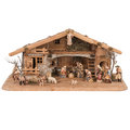 Stall Lindau, Familie 4teilig, Ochs + Esel, Heilige 3 Könige, Hirt Schulterschaf, Hirt kniend mit Hund, Hirtin sitzend mit Kind, Hirt mit Schaf, Gloriaengel, Lämmerpaar, Schaf fressend
