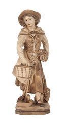 Auf Nitrogrund mit Ölfarben zart bemalt und mit Schlagmetall vergoldet