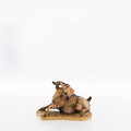 Auf Nitrogrund mit Ölfarben zart bemalt und mit Schlagmetall vergoldet
