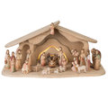 Stall Modern Art beleuchtet, Hl. Familie Aroma, Ochs und Esel, Gloriangel, Heilige 3 Könige, 6 Hirten, Engel betend, Kamel und Kameltreiber, Schaf, Schafgruppe liegend, 2 Lämmer, Ziege