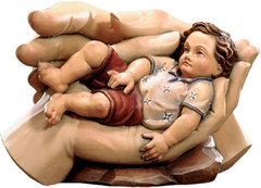 Auf Nitrogrund mit Ölfarben zart bemalt und mit Schlagmetall vergoldet