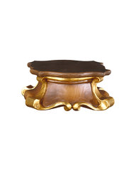 Auf Nitrogrund mit Ölfarben zart bemalt und mit Schlagmetall vergoldet