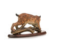 Auf Nitrogrund mit Ölfarben zart bemalt und mit Schlagmetall vergoldet