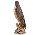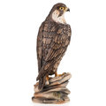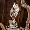 Der holzgeschnitzte Wanderfalke ist in vielen Größen, in den Ausführungen natur, dreifach gebeizt und lasiert verfügbar. In der bemalten Variante erkennt man die Hauptmerkmale des Vogels: die dunkle Oberseite, die cremfarbene Unterseite, der schwarze Bartstreif, der von der hellen Kehle scharf abgesetzt ist. Die Augenringe und Beine sind gelb, die Krallen schwarz. Die Holzfigur des Wanderfalkes ist in unserem Onlineshop sowie im Holzfigurengeschäft in St. Christina in Gröden erhältlich.