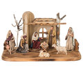 Stable Traditional, Holy Family Immanuel, Herdsman with bag, Herdswoman, Herdsman with lamb, Sheep standing, Sheep lying