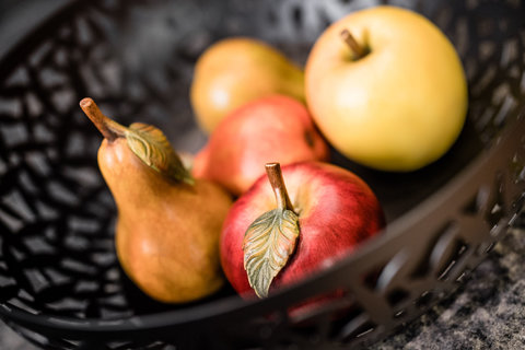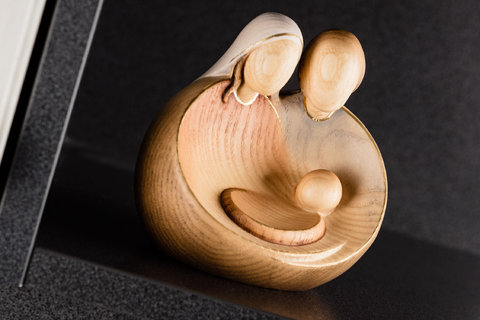 Wood stained and treated with pastel paints and decorated with gold and silver leaf